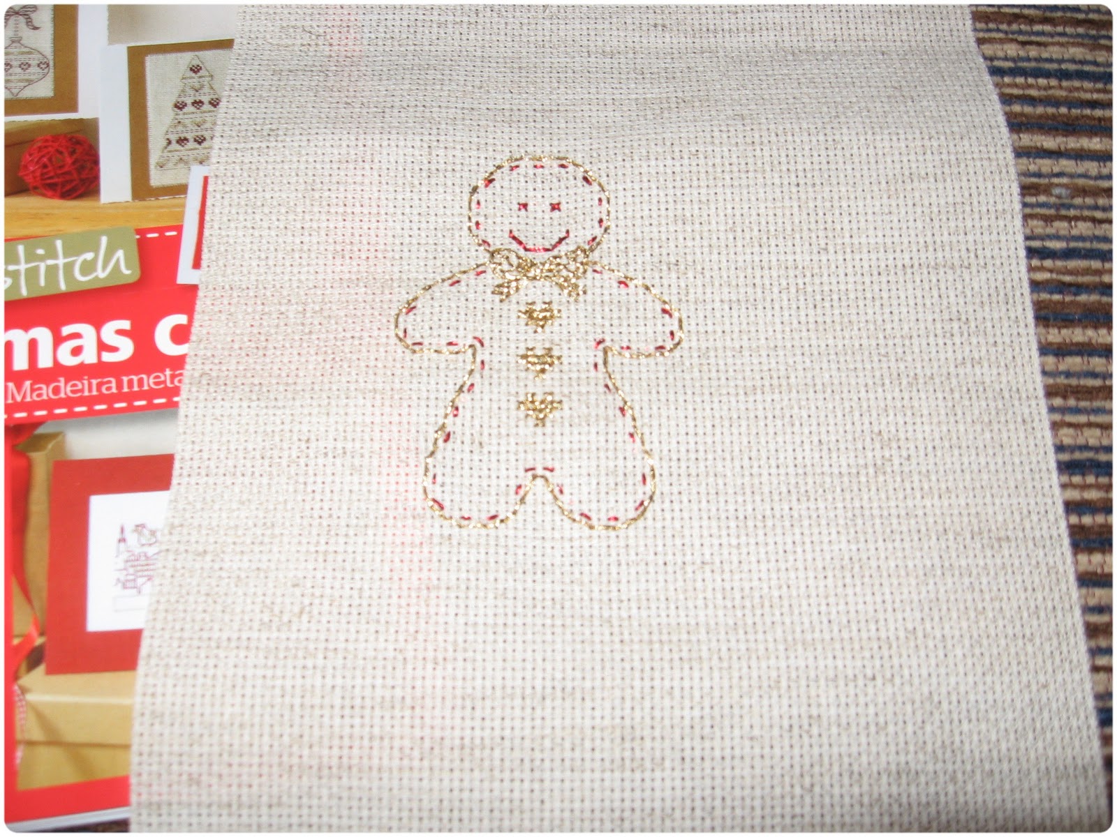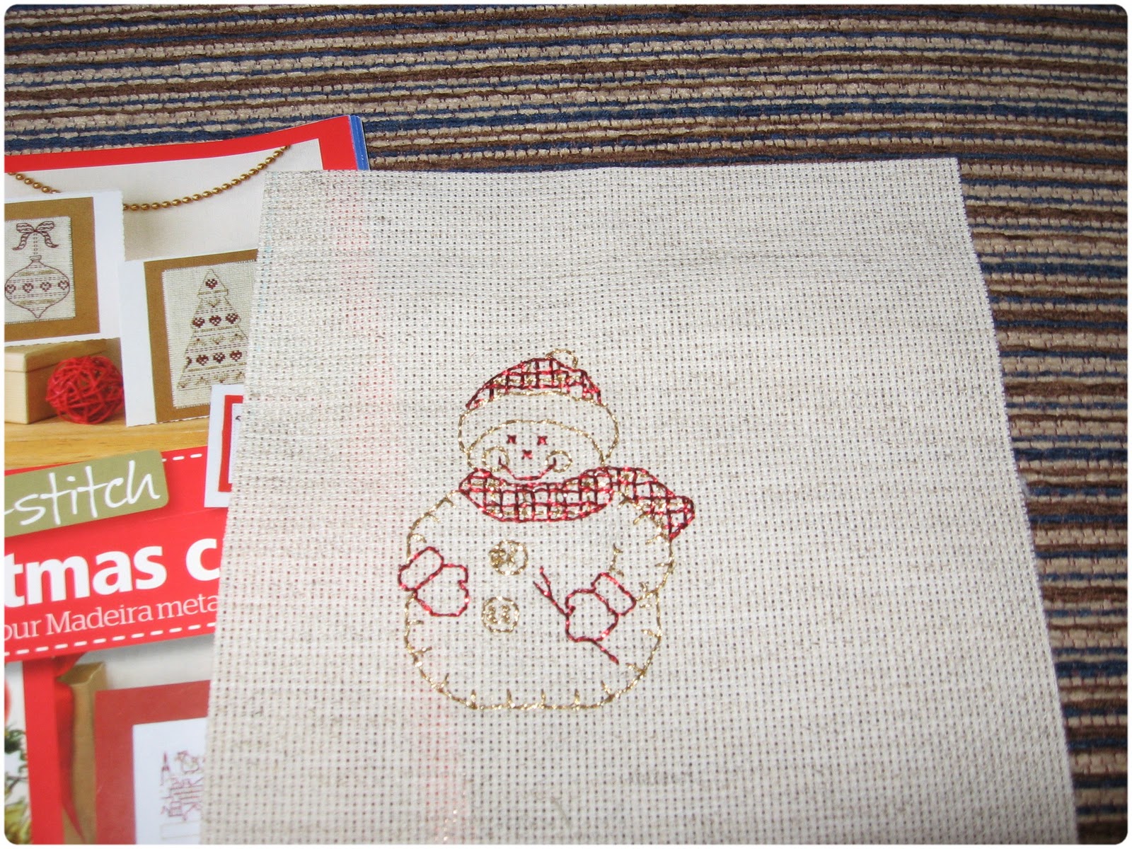 Są w niej wzory na niewielkie świąteczne obrazki, szybkie do wyhaftowania. Mam kilka na oku i jak do tej pory udało mi się zrobić bałwanka