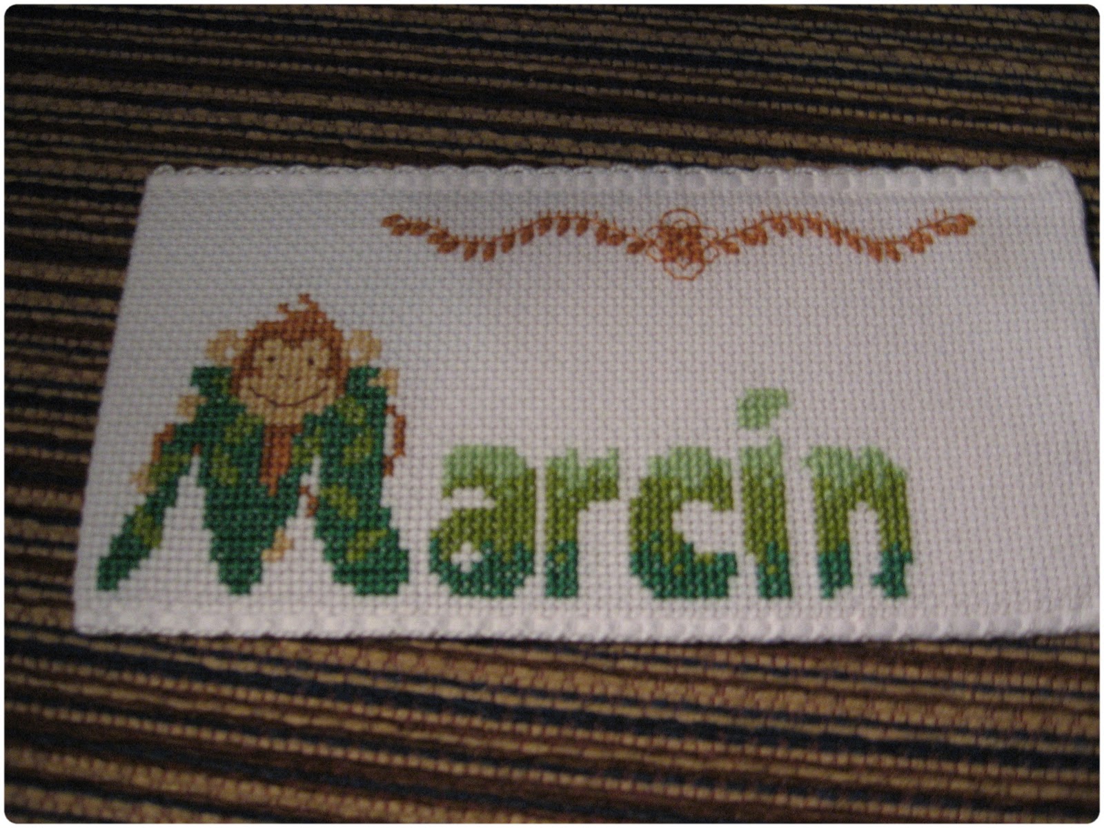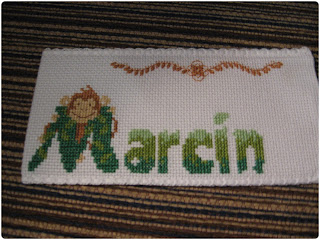 W weekend zrobiłam tez zakładkę dla mojego męża. Jest to moja pierwsza zakładka, więc proszę o wyrozumiałość. Dla usztywnienia wsadziłam do środka plastikową kanwę, dzięki czemu będzie można także wyprać zakładkę w razie potrzeby. Plastikową kanwę kupiłam kilka lat temu i leżała sobie w szufladzie, ponieważ nie znając się wtedy za bardzo na rzeczy nie wzięłam pod uwagę ilości oczek i okazało się w praktyce, że ma zbyt małą ilość oczek na 10 cm. Nawet haftując 6 nitkami było widać lekkie przerwy między krzyżykami. Ale w końcu nadszedł czas, że i ona się przydała:) Czas najwyższy zaprezentować zakładkę