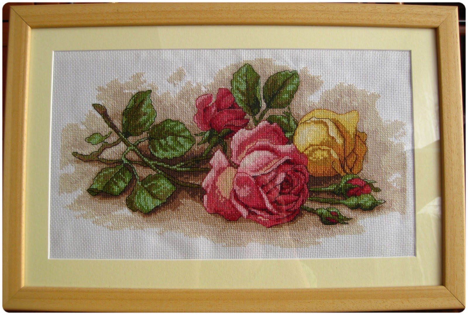 dzięki mojej kochanej siostrze:* mogę Wam pokazać  róże na o wiele lepszych zdjęciach. Ten haft wymagał sporo pracy, ale efekt jest tego wart