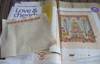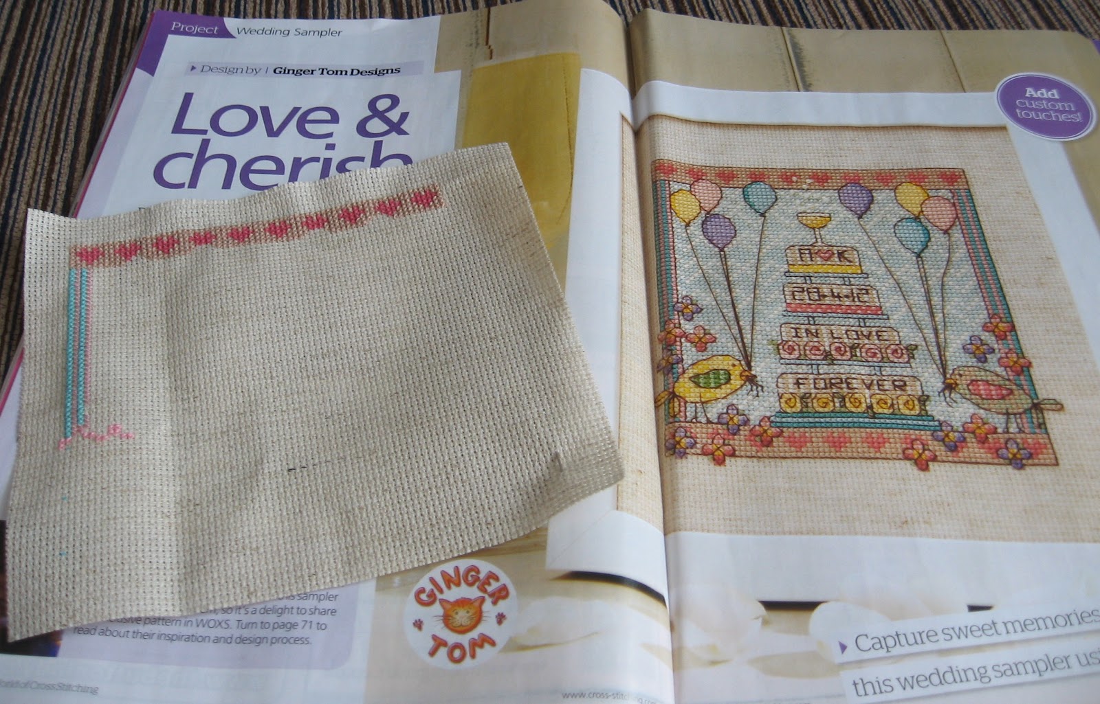 W oczekiwaniu na wzór do kolejnego wiśniowego obrazka, zabrałam się za wyszywanie pamiątki ślubnej dla mojej koleżanki. Kilka razy chciałam obdarować znajome pary takim prezentem, niestety zwykle na planowaniu się kończyło... Aby tym razem historia się nie powtórzyła, zabrałam się do pracy sporo wcześniej, a obrazek też nie jest duży. Póki co niewiele jeszcze widać, ale niebawem się to zmieni :)